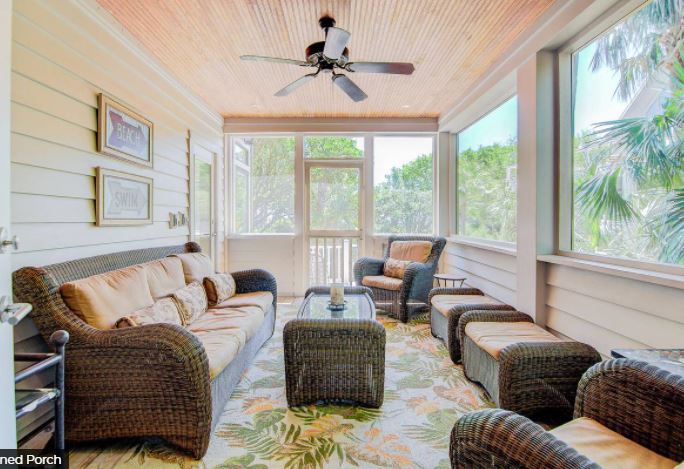 The Atlantic Ocean is just a 100-yard walk from 52 Surfsong, an exclusive 6-bedroom property on Kiawah Island. The home affords everyone in the family plenty of space to relax, with three living areas and a full-furnished screened-in porch. Of course, high-speed internet is available for everyone’s working and school needs. Separate living areas on each floor provide plenty of privacy and there’s even an Xbox gaming console in the fourth-level living area.